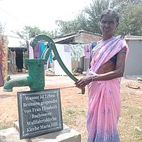 Frau Maria Anna Meng stiftet einen Brunnen. Er wurde im Bereich Ravipadu errichtet. Der Brunnen hilft einer Dalit-Witwe.