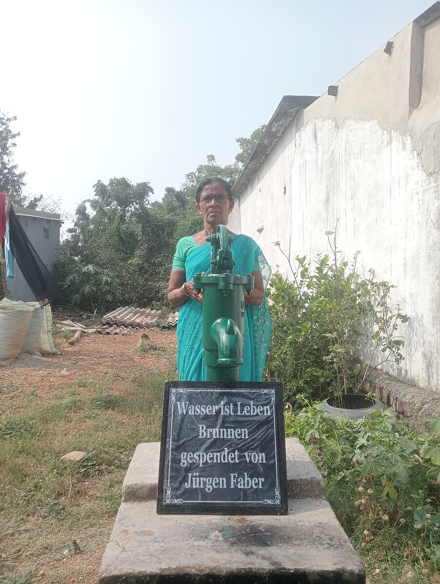 Herr Jürgen Faber spendet einen Brunnen, der der armen Witwe Usha helfen wird.