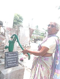 Frau Bachmayer spendet einen weiteren Brunnen, der der Dalitwitwe Lakshmi zugutekommt.